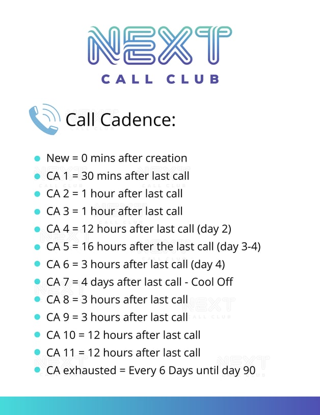 - First week: Day 1–7: Continue a consistent call cadence alongside automated text follow-ups. Your goal is 11+ meaningful touchpoints across channels - not harassment, but presence.